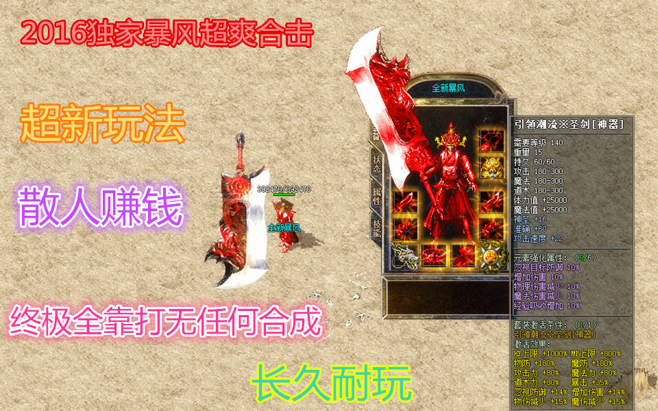 【版本介绍】:★2016超级巨作----暴风超爽合击最新版★★★非RMB玩家一样牛★★★