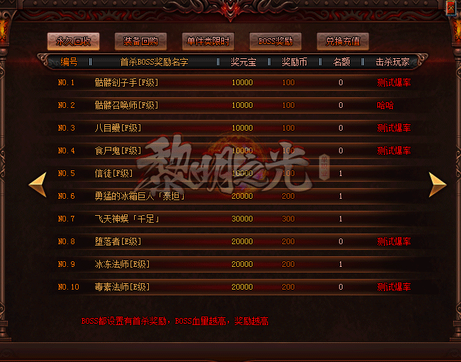每个新区提前两小时开放测试区!测试区打到RMB可以记录兑换新区充值!