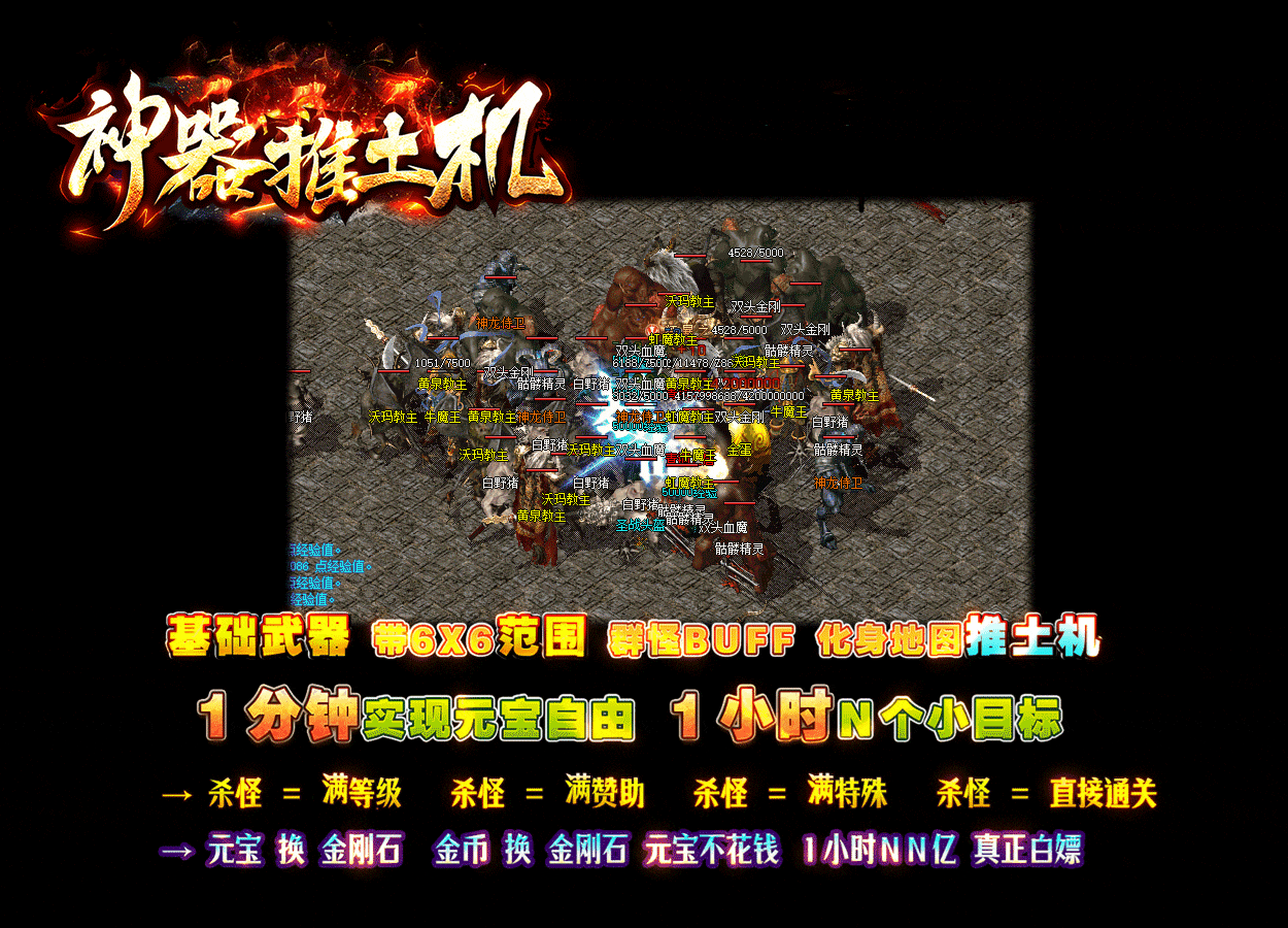 ▶游戏介绍:上线送自动挂机和自动回收,装备都靠打,BOSS爆充值,靠时间可以成获得一切