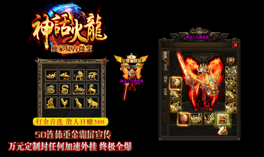 神话火龙复古微变,独家新版,游戏乐趣更多,适合散人团队发展