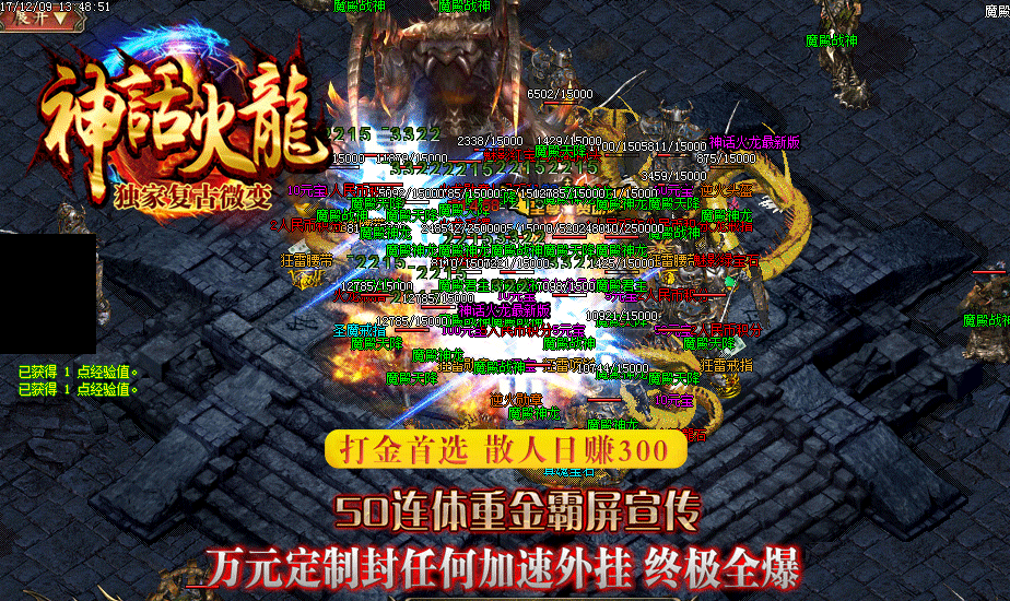 本服无任何垃圾活动.所有活动都是在送你钱。装备好打。爆率全开。散人轻松日赚300