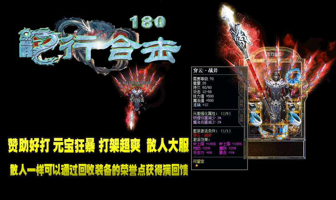 - 游戏介绍:全新概念龙行大极品,独家版本,新增全新3D地图复古不闪眼。!