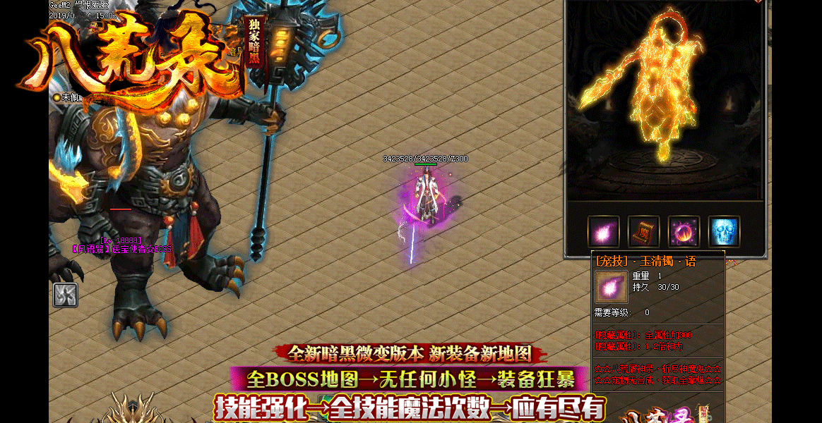 - 全新玩法、全新挑战、百种宠物和技能随意搭配→宠物更是靠打怪就升级→免费升级!没错就是宠物免费升级。多种BUFF装备→各种特效!!!