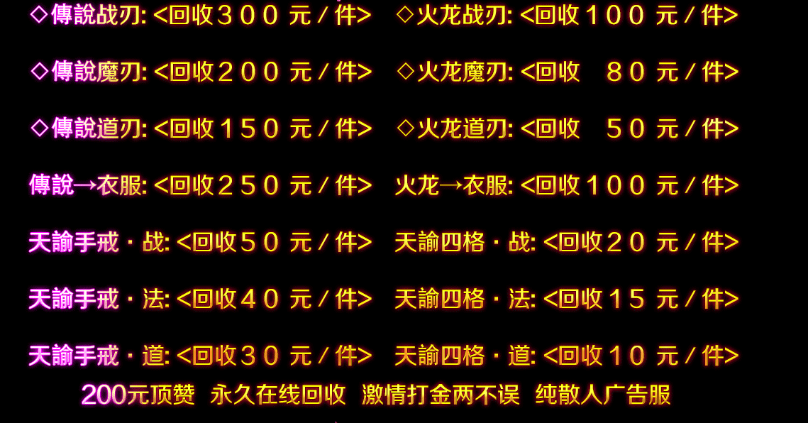- 【公告】3.火龙装备-王者装备-荣耀装备 元宝比例1:300 网银额外赠送100%