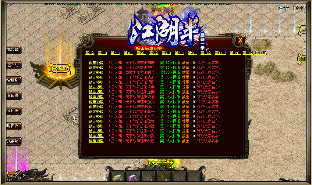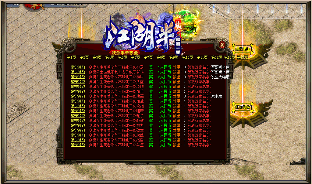 江湖半妖杀半单职业最新一季 本服统一价格50元满回馈