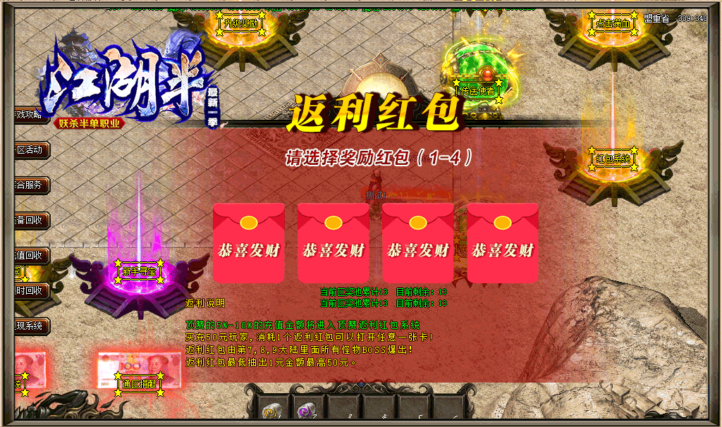 开区限时奖励320 返利红包玩家充值的满赞%5-10投入到红包系统里去
