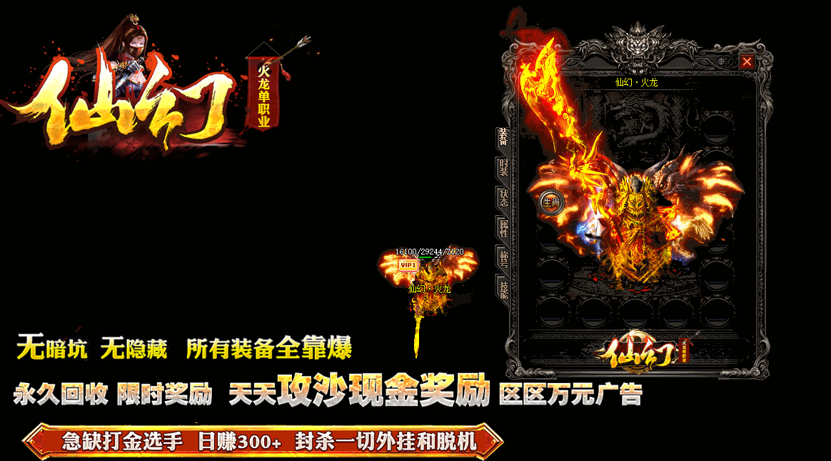 【绝密版本】:《仙幻单职业》新区四大活动现金装备送不停,攻沙奖励RMB红包!!