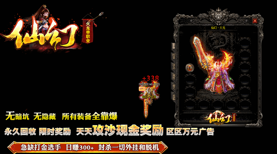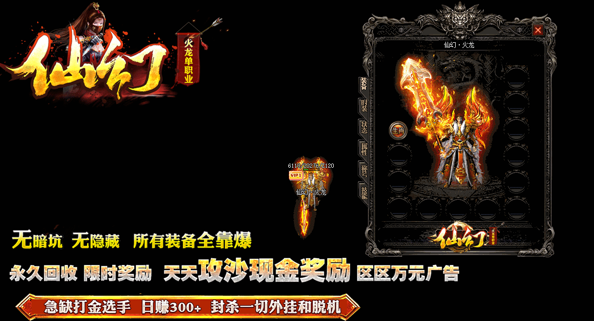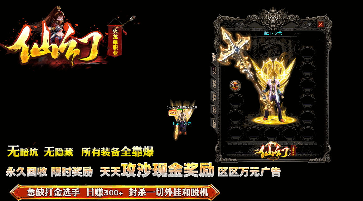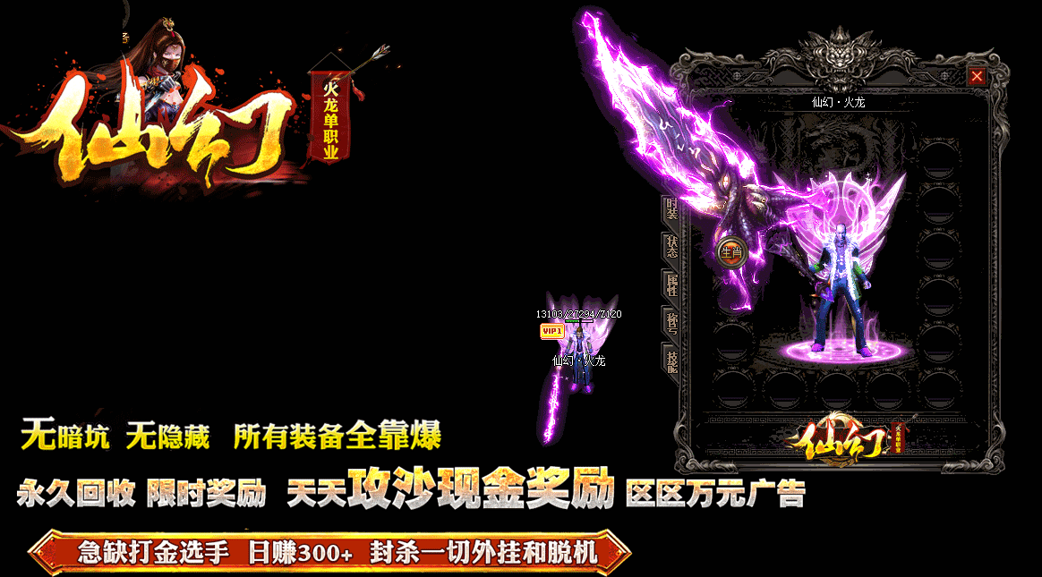 【绝密版本】:《仙幻单职业》RMB永久回收终极装备,永久保值,打到就是赚到!!