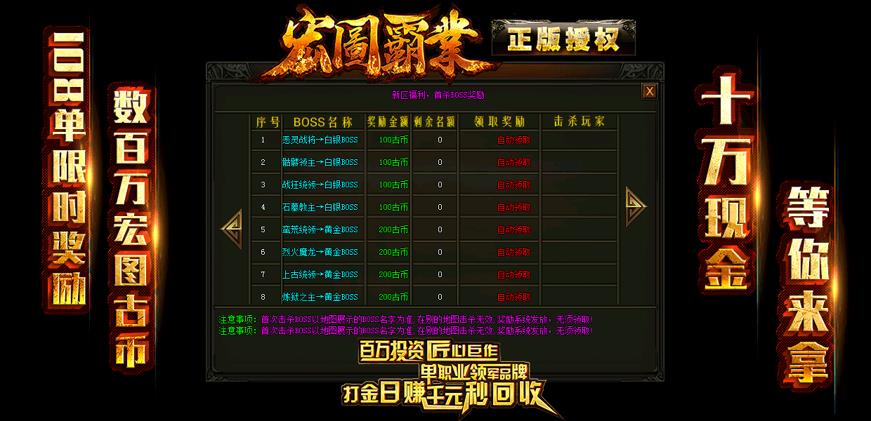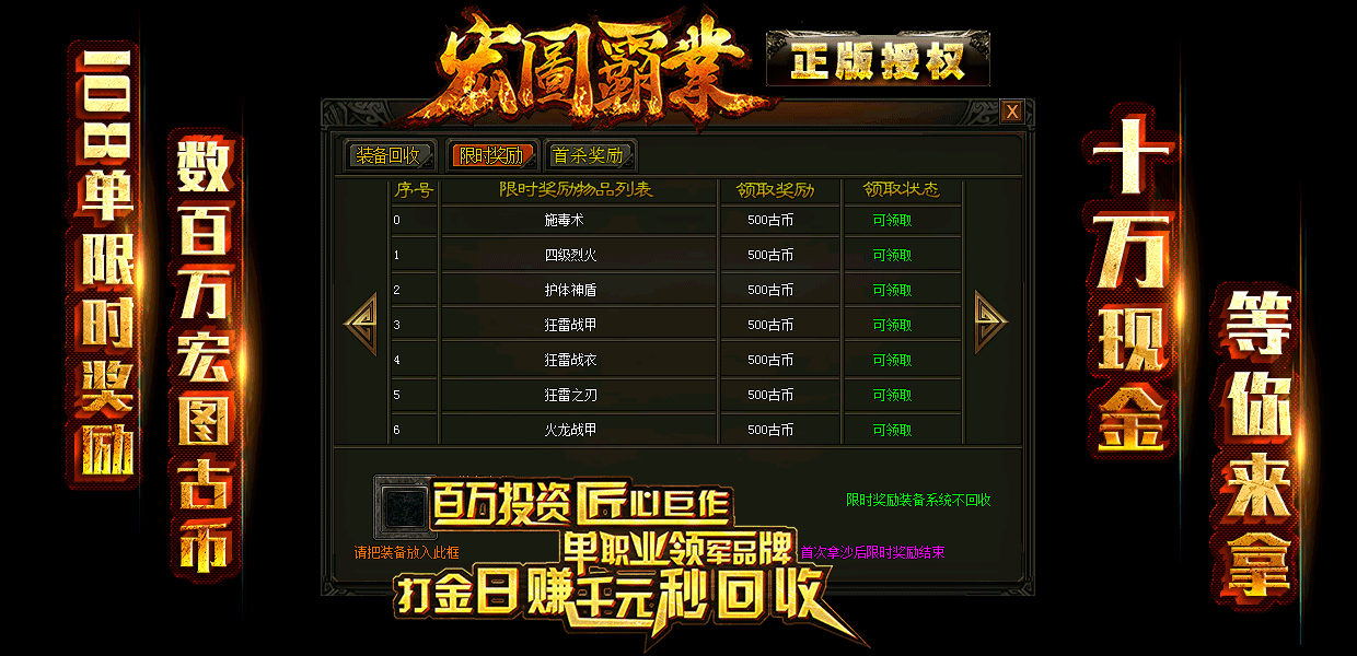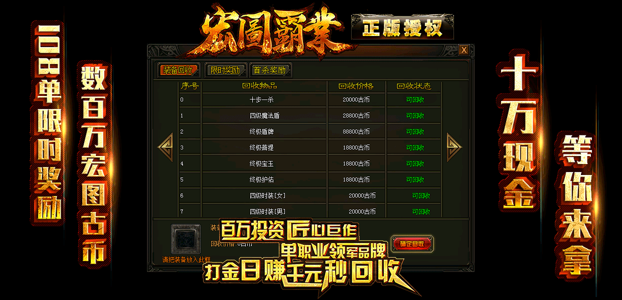 ◆[版本介绍] -永久回收-限时奖励-首杀奖励-装备保值-封神奖励(区区火爆)
