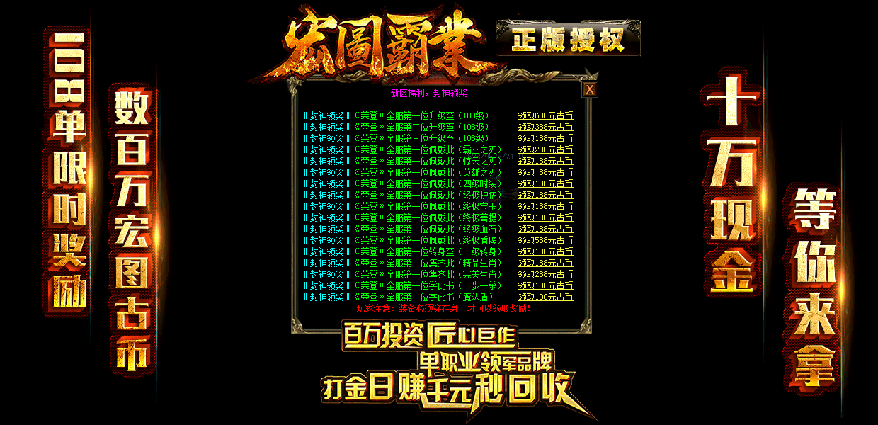 《宏图霸业·复古单职业》◇限时狂送◇物价保值◇火爆开启◇