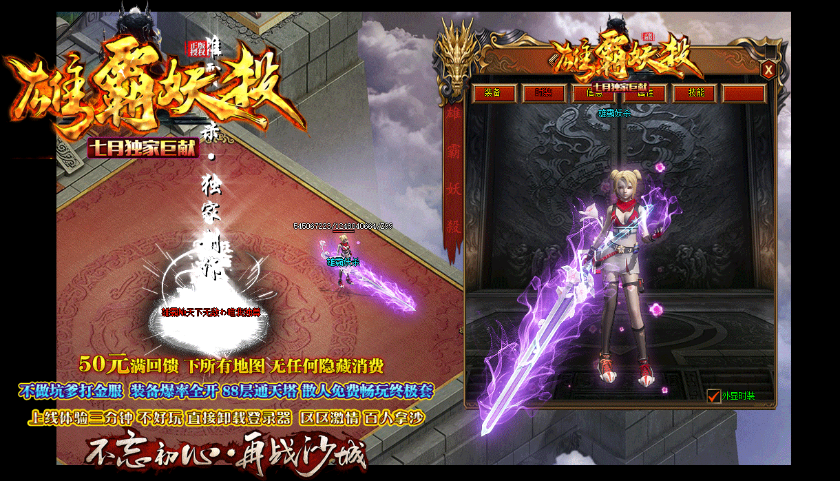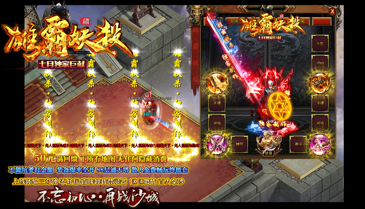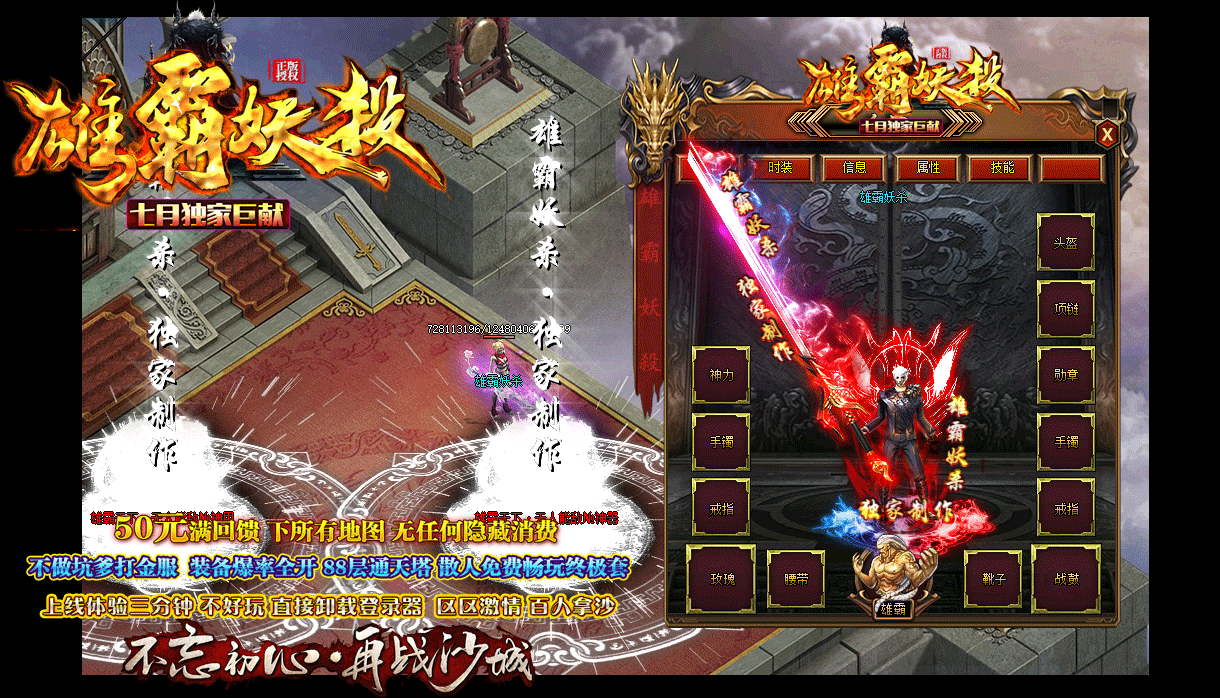 游戏介绍:我们的版本复古耐玩,你可以上游戏看看!装备全部靠打,花时间或花钱都能混到顶级,