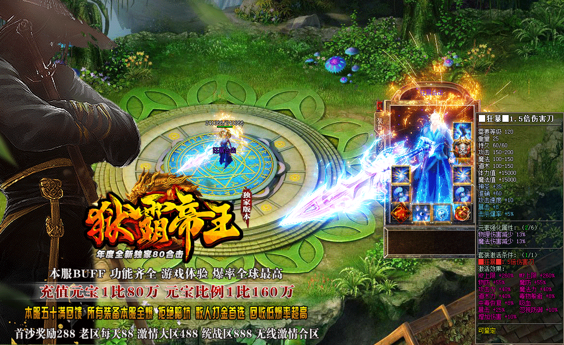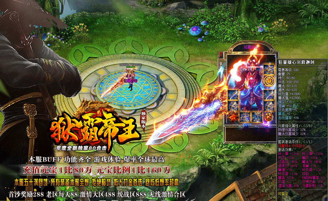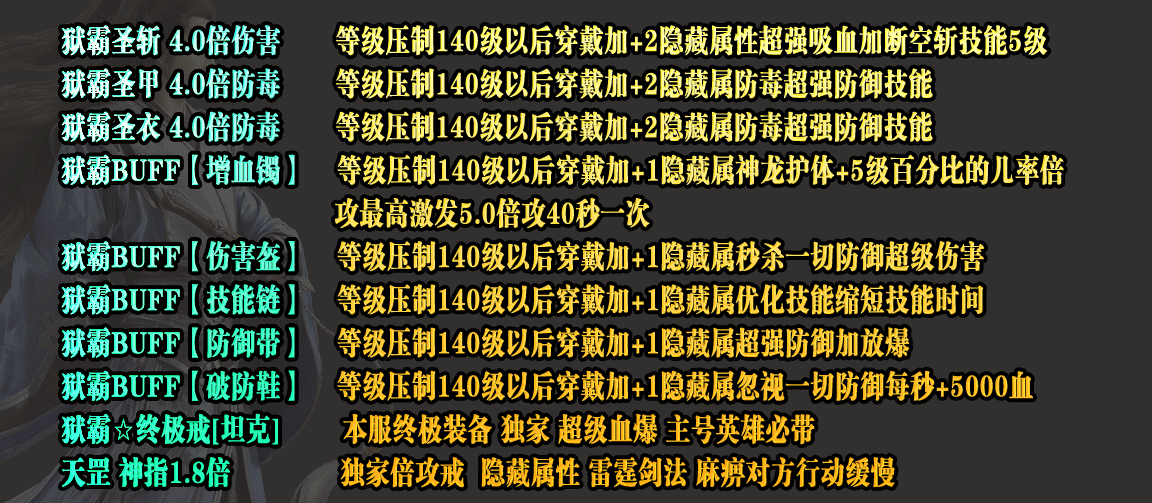 散人→上线赠送1级剑魂(每刀吞噬怪物100W血量.剑魂一共十二阶.终极全靠打)