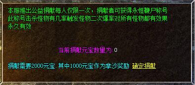 4、每周天3个新区,第二天晚上八点合区,第三天统一拿沙奖励捐献元宝!
