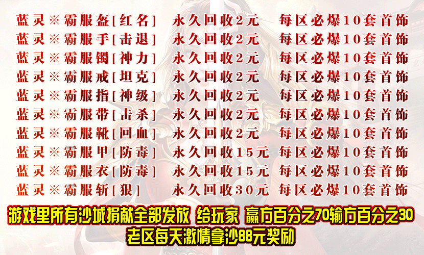 - 【充值介绍】:暗黑╱词缀╱倍攻╱铭文╱神力╱宠物╱神器╱极品╱╲╲超级大陆·转角偶遇万年BOSS╱╱