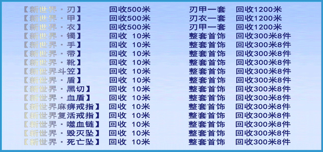 几十种各类永久回收保值装备·每种的价格绝对能让你大饱眼福!