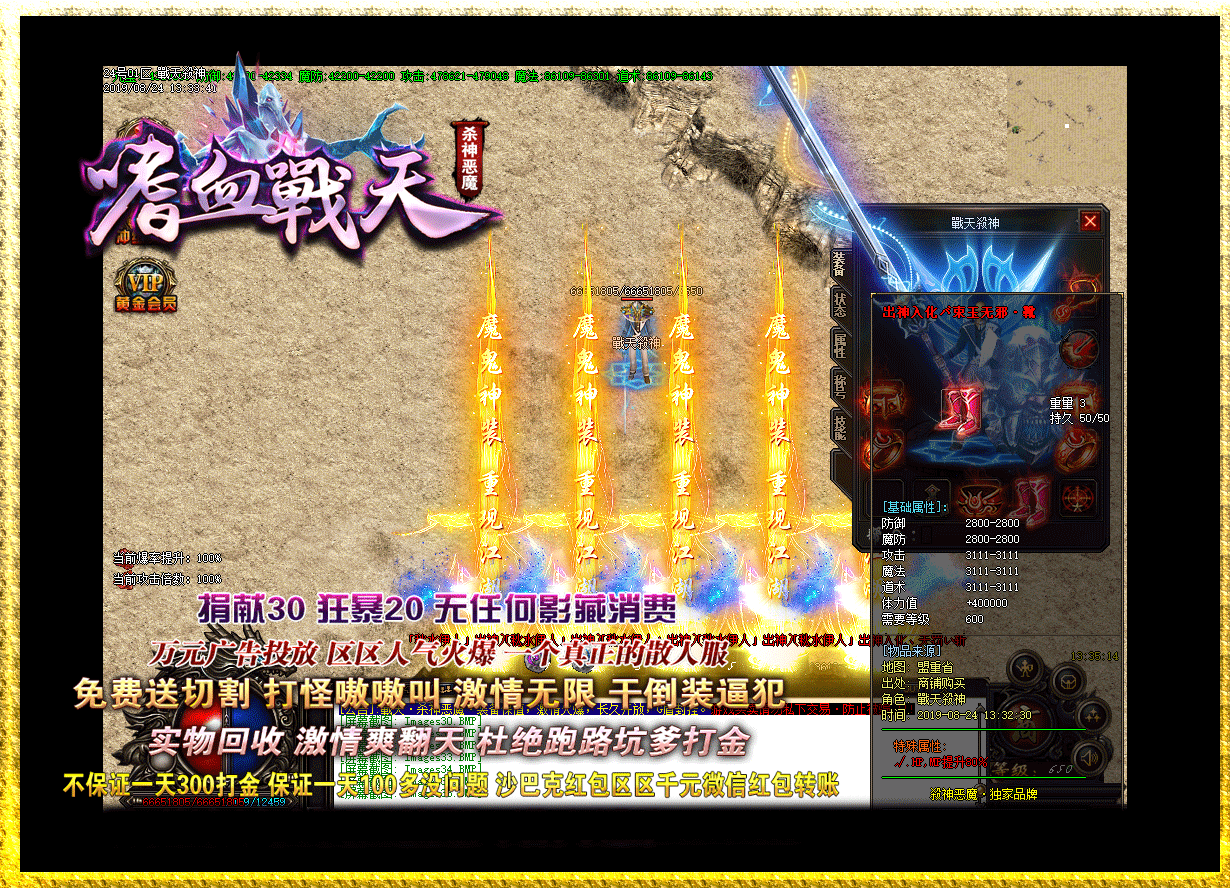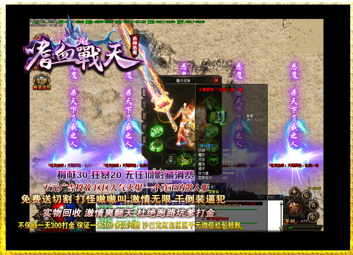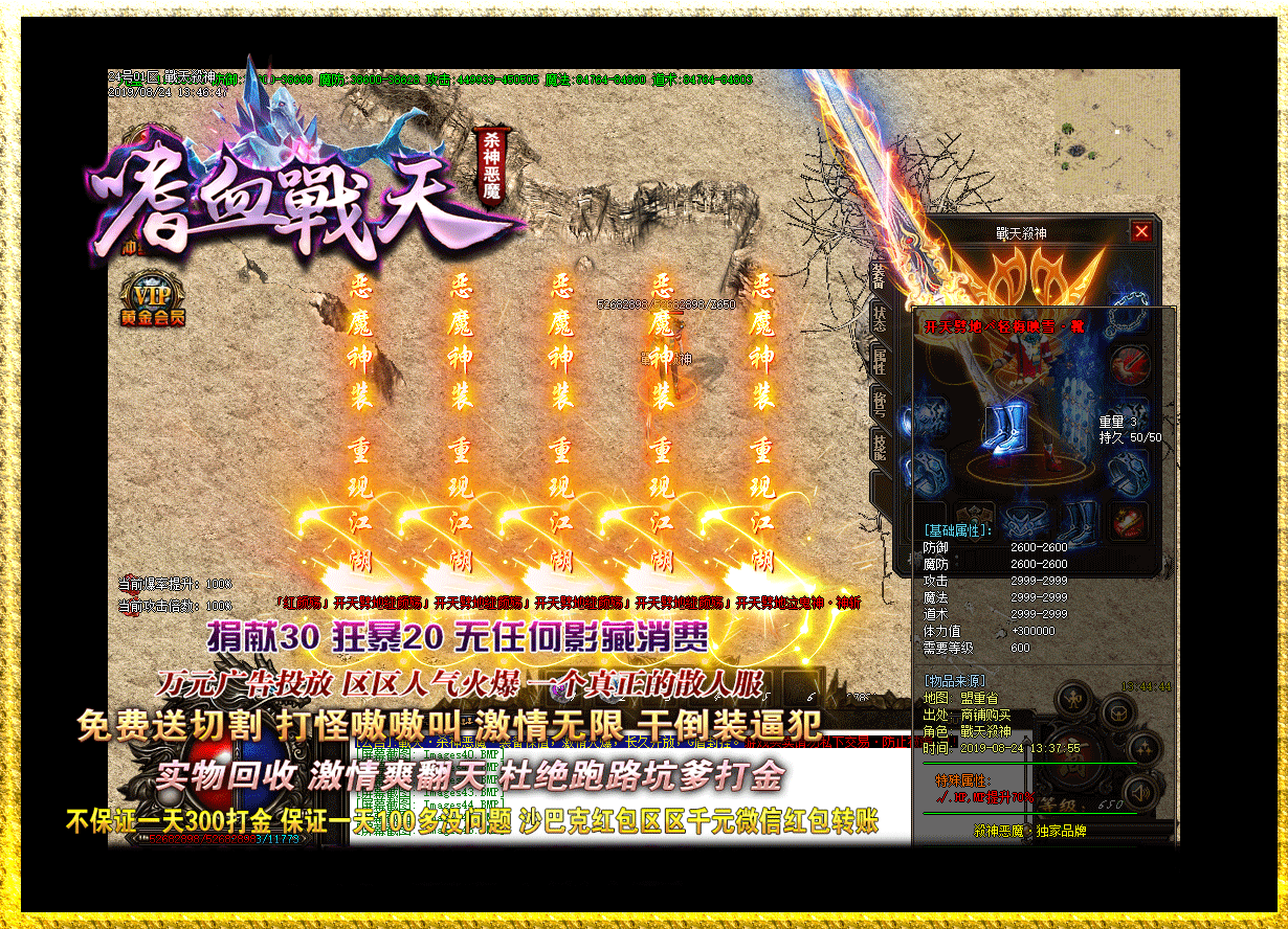 - 2020/04/01【本服公告】 本着玩家利益至上的原则.保证打金的能赚钱.老板玩的开心!!