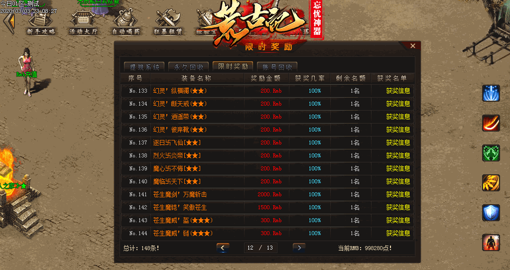 新区攻城奖励赞助+沙城捐献 老区天天功沙