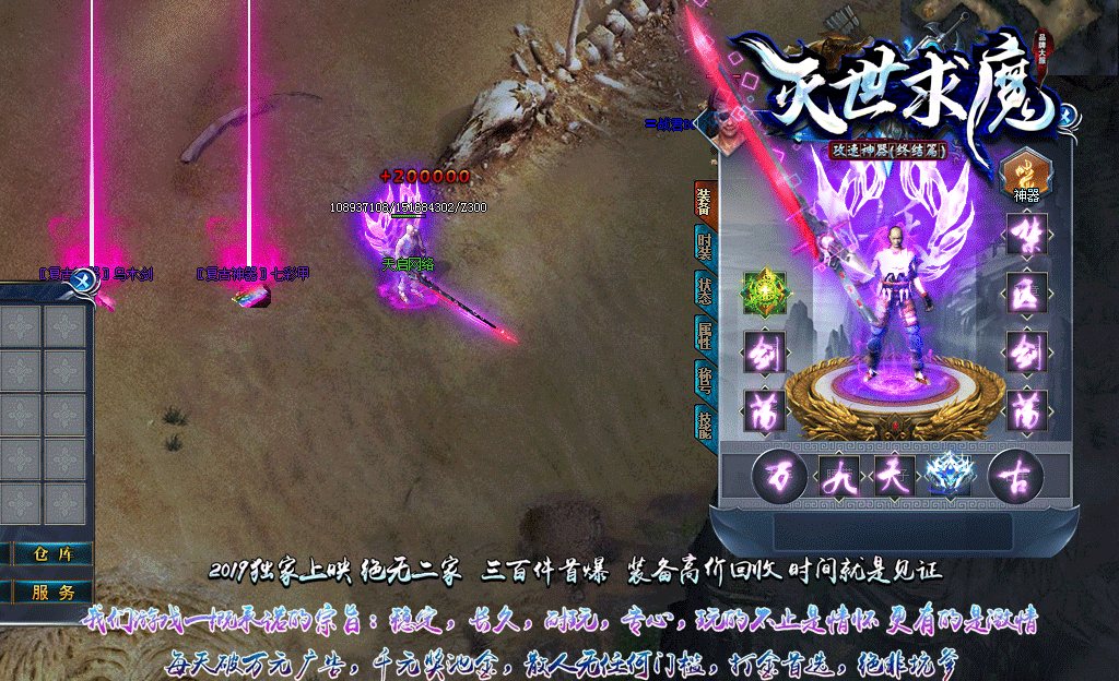 2020跨年神作提前上映,不封速,不卡刀,不卡位,不变态,就一个字爽,好话不多说,打金,激情,体验,便宜,要啥有啥,应有尽有,可以玩到过年