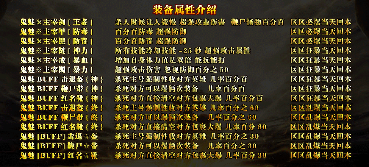 • 【装备介绍】:暗黑╱词缀╱倍攻╱铭文╱神力╱宠物╱神器╱极品╱╲╲超级大陆·转角偶遇万年BOSS╱╱