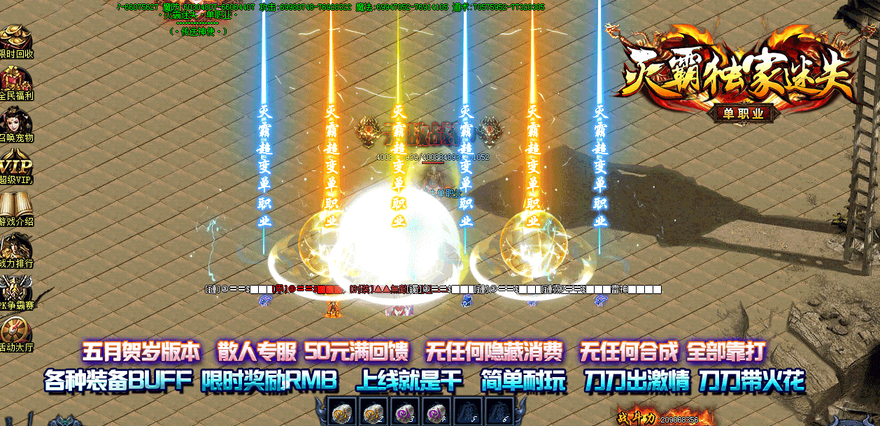 上线免费送VIP会员 充值顶赞免费打 超爽攻速任你嗨 小怪爆终极 一切全靠打 开启看脸时代 满地光柱 天天百人攻沙