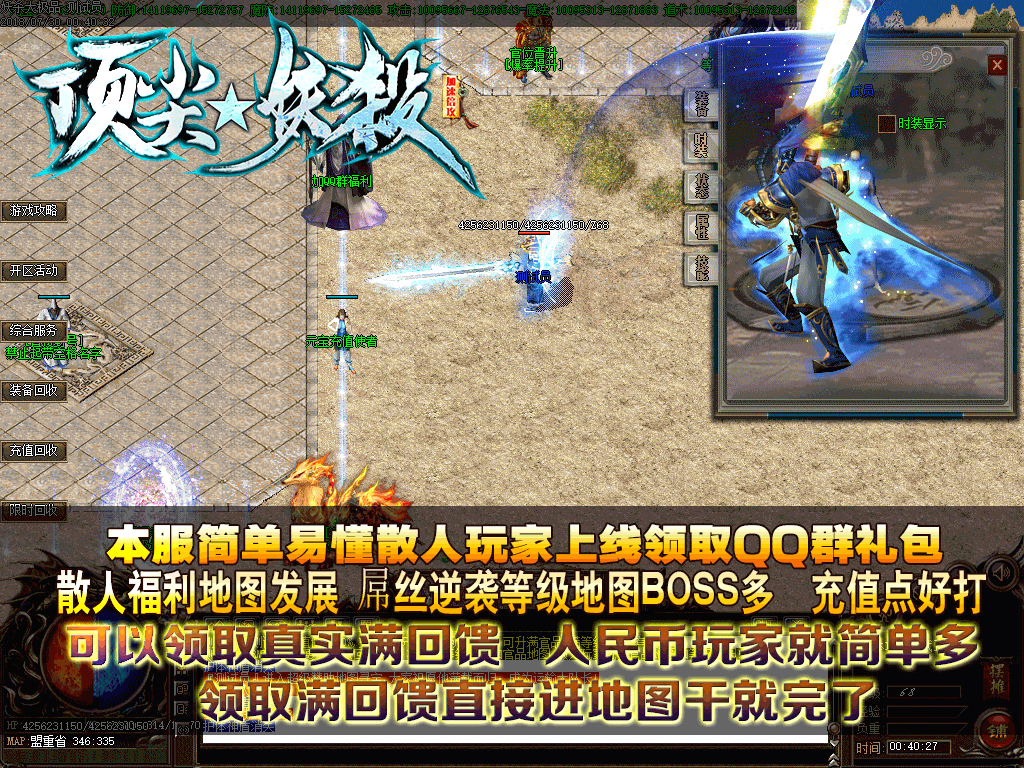 【游戏介绍】:装备爆率适中,充值点、元宝、金刚石好打,散人一样牛逼!