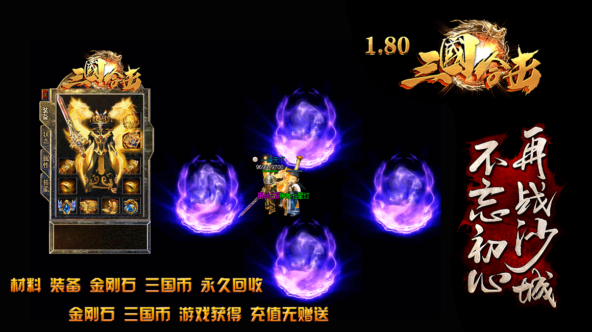 - 【游戏介绍】 本服为无GM模式运营,金刚石,三国币.永久回收,保证游戏公平公正