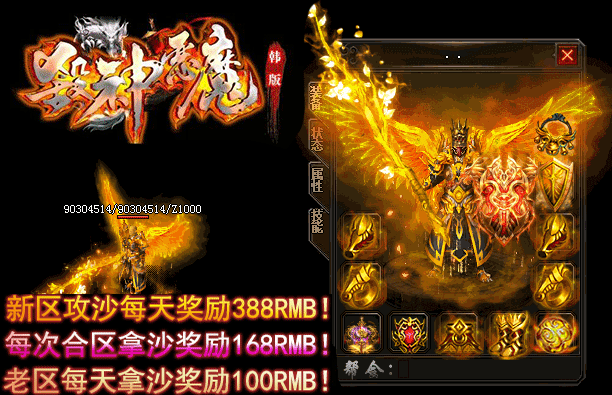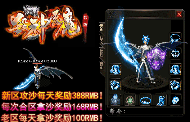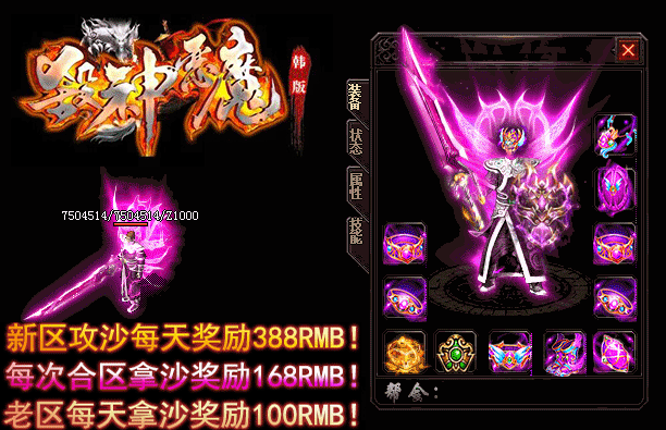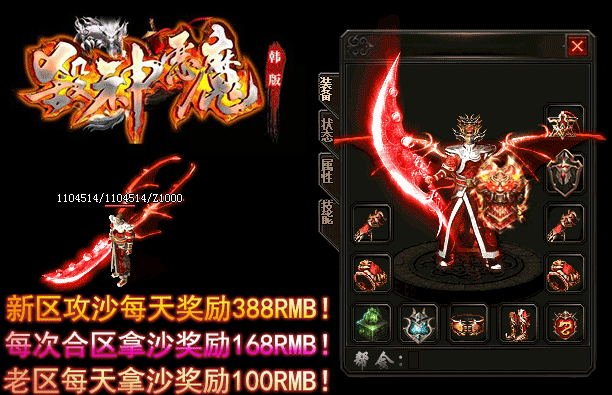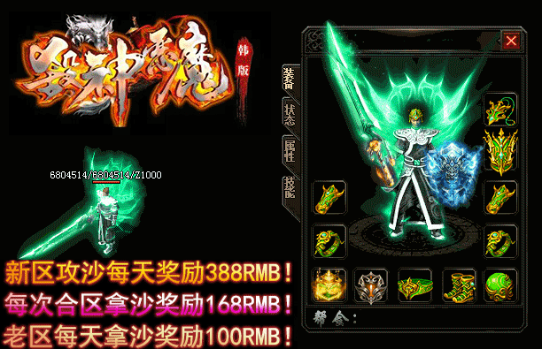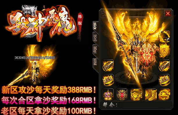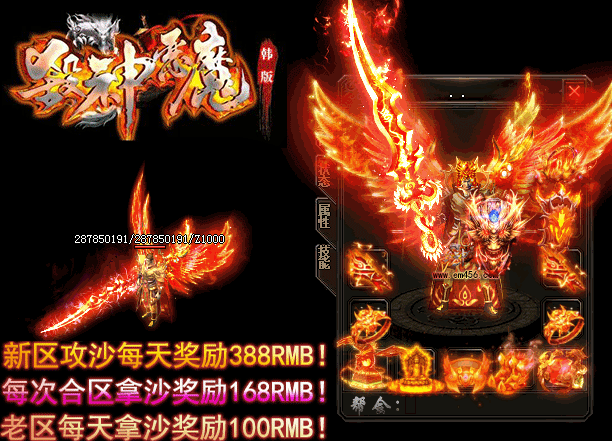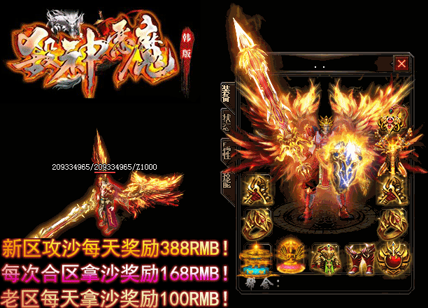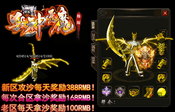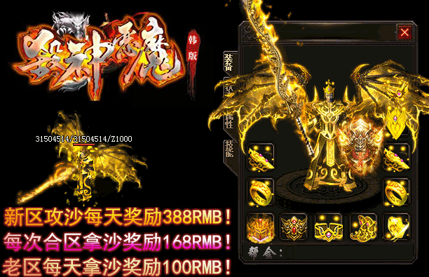 - 【奖励】 开区第二天合区统一攻沙.每日新区奖励388RMB现金红包.